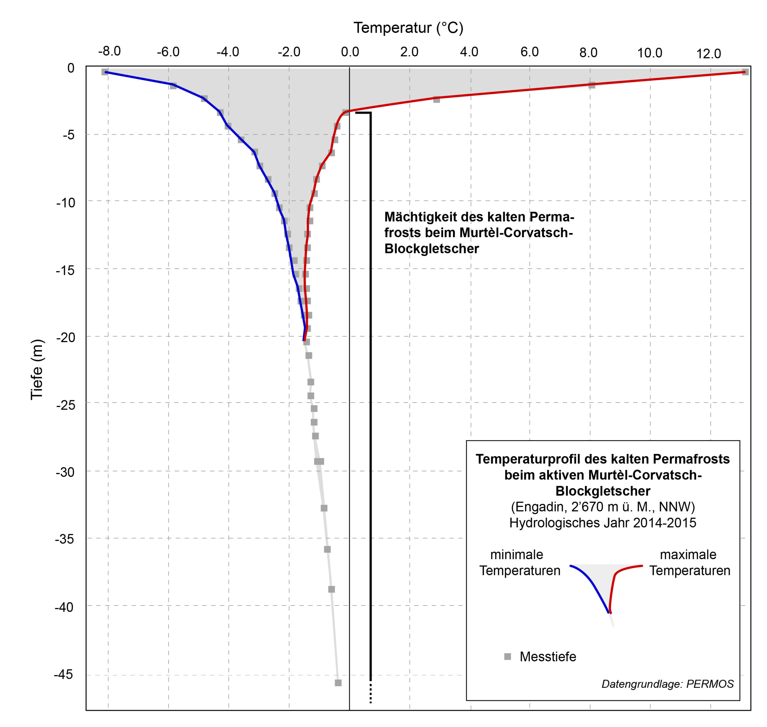 Abb. 1: Thermisches Profil eines Blockgletschers