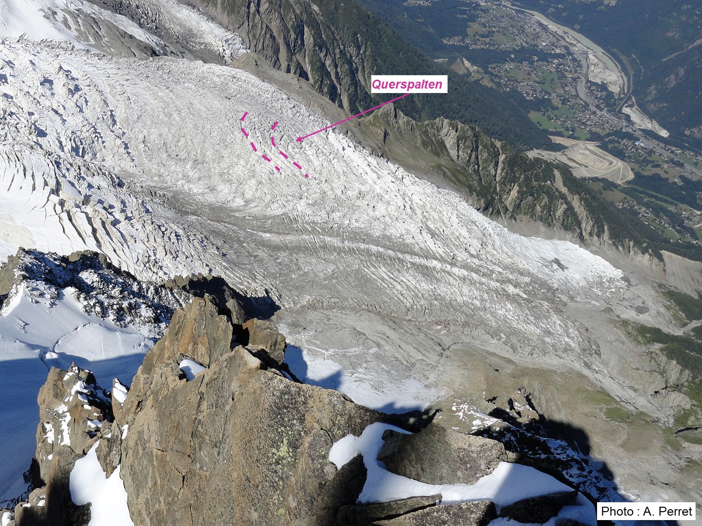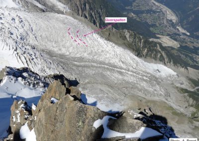 Abb. 3: Querspalten auf dem Bossons-Gletscher (Chamonix, Haute-Savoie, Frankreich, 2011).