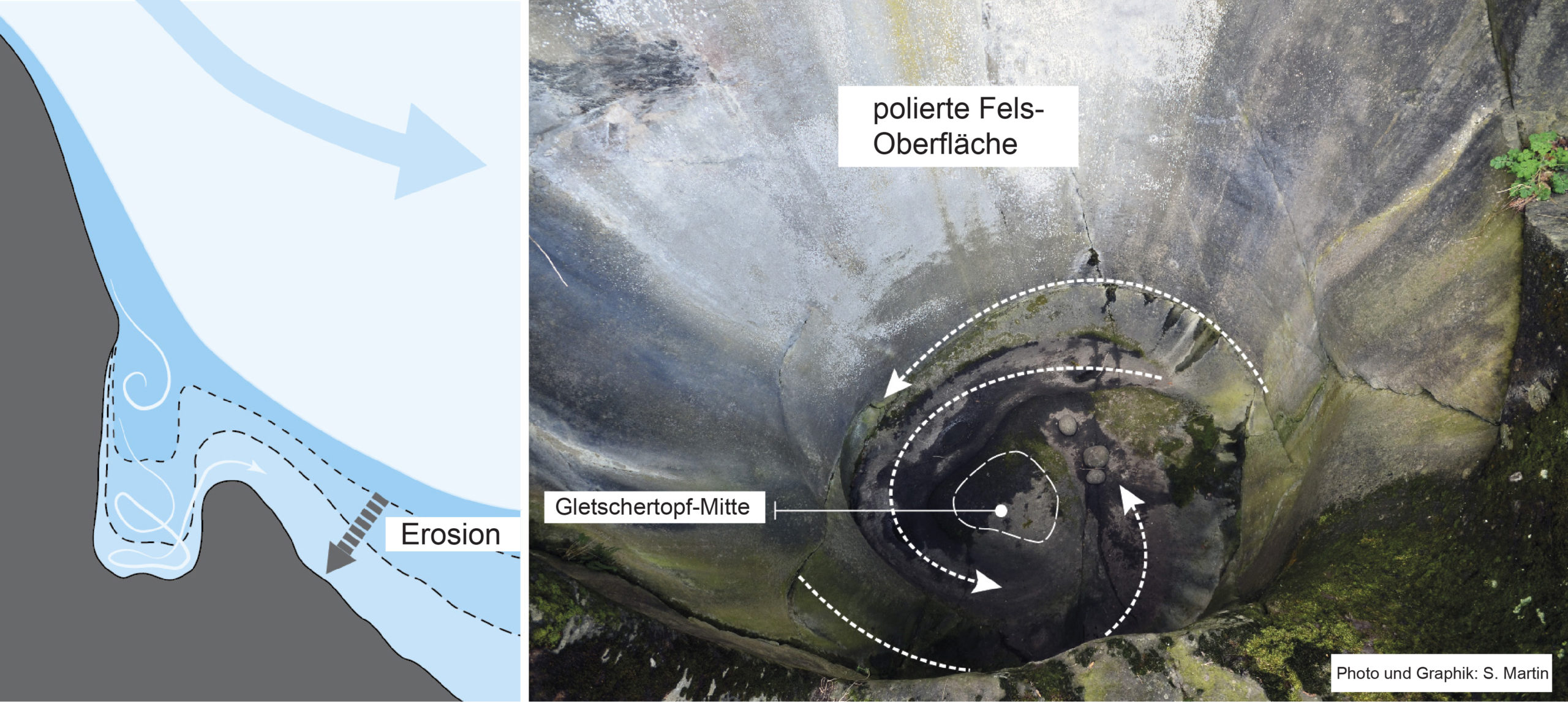 Abb. 6: Phasen der Entstehung eines Gletschertopfes