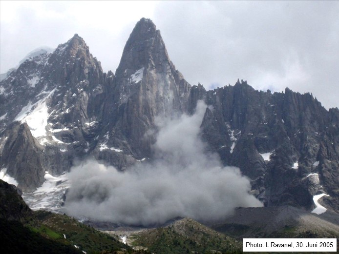 Abb. 1: Felssturz aus der Westwand der Drus (Chamonix-Tal, F)