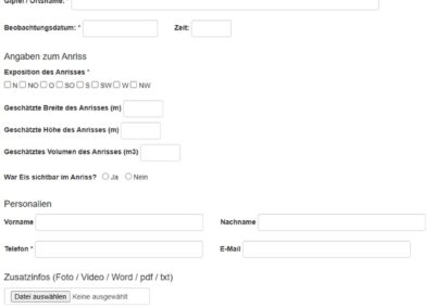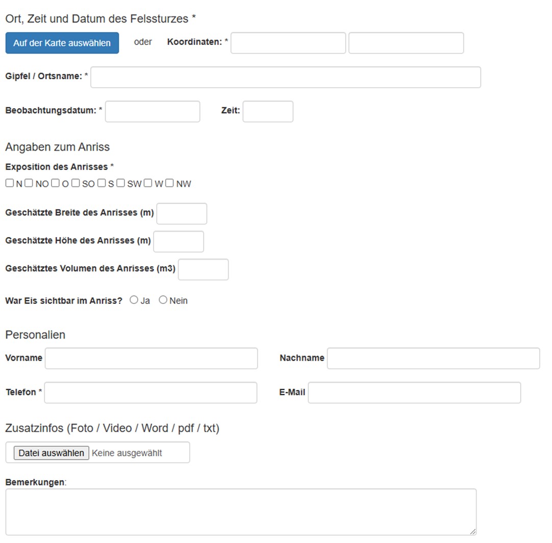Abb. 3: Online-Fragebogen des PERMOS-Netzwerks zur Meldung von Felsstürzen
