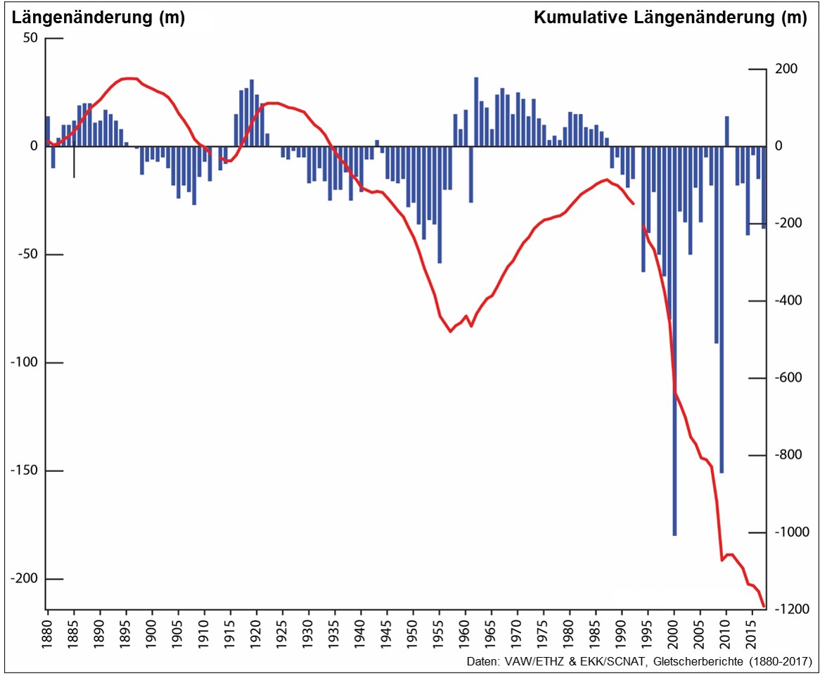 Abb. 1: Längenänderungen des Trient-Gletschers (Vallée du Trient, VS)